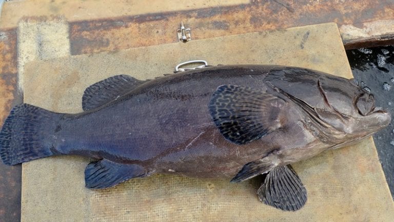 喂食日清晨6点,养殖业者就需投掷大量的鲭鱼、竹荚鱼等喂食龙胆石斑。 捕捉大工程 龙胆石斑因体积大,捕捉时需有相当多人力协助,捕捉前渔塭会先放水、降低水位,约5名捕鱼工穿着青蛙装、带着渔网下至渔塭里围捕鱼群,慢慢收网将龙胆石斑赶至渔塭的一侧,再将渔网锁定到一小块区域逐一捕捉,体型大的龙胆石斑非常有力,所以工人也需要有相当的体力和耐力,稍不小心不仅造成鱼体受伤,也会让自己受伤。