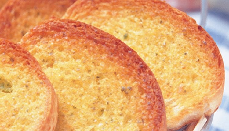 精选影音 蒜香面包 【材 料】 法国面包 1条 奶油 100公克 蒜碎 1大匙 干洋香菜 1小匙 【调 味 料】 盐 少许 【做 法】 1.将法国面包切成斜角厚片。 2.将奶油放入容器中,置于室温中软化,再加入盐、蒜碎、干洋香菜拌匀成香蒜酱。 3.将作法1面包均匀抹上作法2香蒜酱,放入预热180℃的烤箱中,烘烤约3分钟,至表面呈金黄色后取出即可。