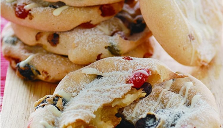 精选影音 圣诞面包(1) 【材 料】 A.麻糬预拌粉 200公克 沙拉油 40公克 全蛋 40公克 水 60公克 盐 0.4公克 B.蜜之果 适量 葡萄干 适量 康途酒 适量 C.糖粉 适量 【做 法】 1.蜜之果与葡萄干浸泡康途酒至软备用。 2.将麻糬预拌粉过筛后,加入其余的材料A、作法1的蜜之果与葡萄干搅拌均匀成面糊状。 3.将作法2的面糊装入挤花袋,再舖了烤焙纸的烤盘上挤由内往外挤成蚊香状。 4.将作法3放入已预热的烤箱中以上火200℃/下火180℃烤约12分钟,取出面包在上面均匀撒上糖粉即可。