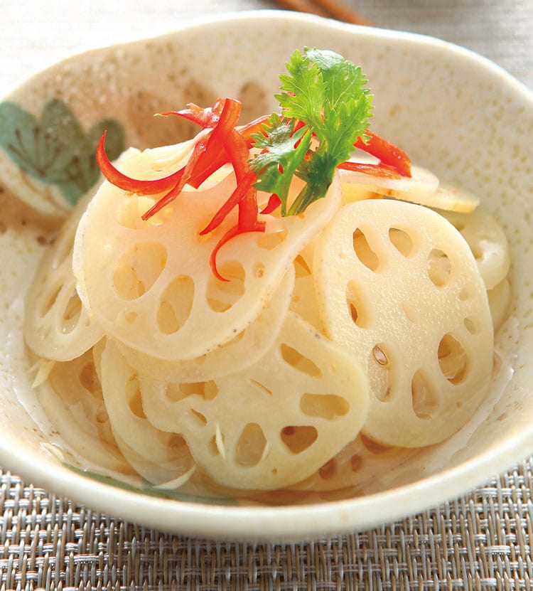 精选影音 凉拌莲藕(5) 【材 料】 莲藕 300公克 【调 味 料】 糖醋汁 5大匙 香油 1茶匙 【做 法】 1.莲藕洗净,用刀刮去较黑的外皮,切薄片后泡水备用。 2.烧一锅开水,莲藕入锅汆烫半分钟后泡冰开水至凉后沥干。 3.将莲藕片置于碗中,加入糖醋汁拌匀再淋入香油即可。 【备 注】 糖醋汁 材料 白醋 5大匙 细砂糖 5大匙 盐 1茶匙 姜丝 20公克 红辣椒丝 10公克 作法 将所有材料混合即可。 尝起来酸酸甜甜,适合清爽的蔬菜与海鲜。