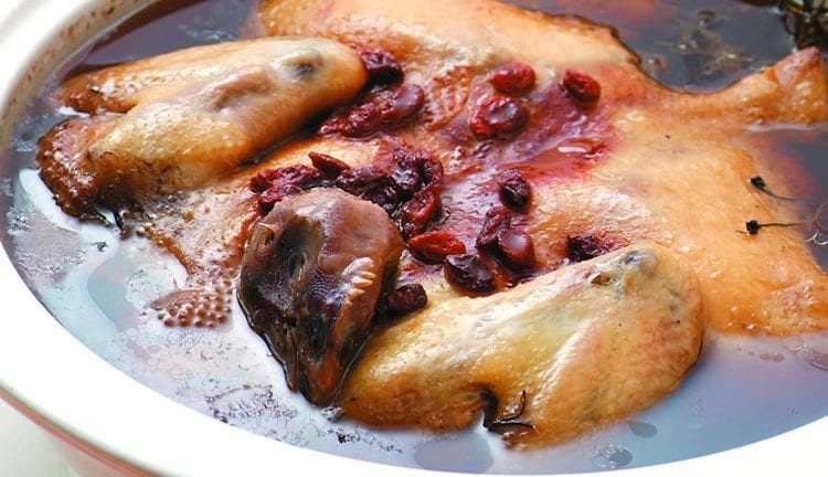 精选影音 风茹草炖鸡 【材 料】 A.风茹草 50公克 全鸡 1200公克 B.枸杞 15公克 红枣 15公克 黄耆 6公克 米酒 20㏄ 水 1500㏄ 盐 少许 【做 法】 1.先将材料A洗净后,分别入锅汆烫去脏、去血水后捞起,再将风茹草塞入全鸡肚中备用。 2.取一大汤碗,将作法1处理好的鸡与所有材料B,放入蒸锅以中小火蒸约3小时即可。