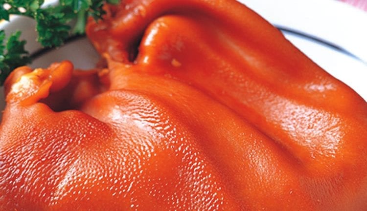 精选影音 香辣卤猪耳朵 【材 料】 猪耳朵 2只 香辣卤水 1锅 【做 法】 1.将猪耳朵洗净后,取一个汤锅将水煮开后再放入猪耳朵汆烫约10分钟后取出冲水。 2.将香辣卤水煮滚后放入作法1的猪耳朵,转小火让卤汁保持在略为滚动的状态,滚约1小时后熄火,让猪耳朵浸泡30分钟后即可取出。 【备 注】 香辣卤水的制作请参考本站食谱-香辣卤水卤包