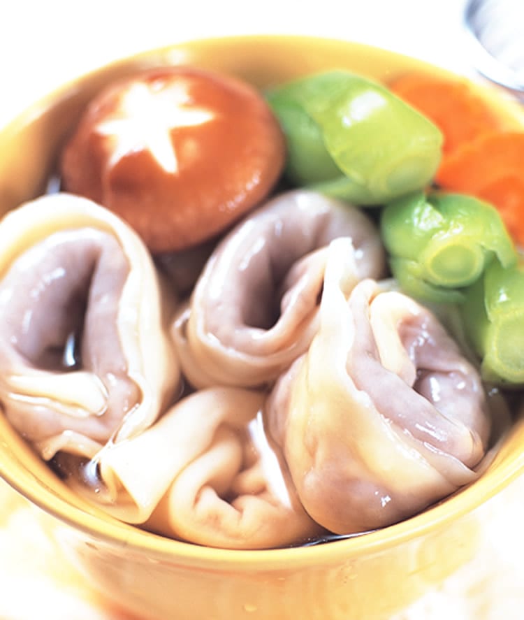精选影音 韭黄牛肉馄饨馅 【材 料】 牛肉 400克 肥猪肉 200克 葱 1根 姜 1小块 水 1杯 韭黄 200克 【调 味 料】 A.盐 3/2茶匙 味精 1茶匙 细糖 1茶匙 B.太白粉 3/2大匙 白胡椒粉 1茶匙 香油 1大匙 【做 法】 1.将葱、姜与水一起用果汁机打约20秒成葱姜汁备用。 2.韭黄切碎;牛肉与肥猪肉一起绞碎备用。 3.取一搅拌盆,将作法2的绞肉放入盆中摔打搅拌至有黏性后,加入调味料A一起以同一方向搅拌完全均匀备用。 4.取作法1的葱姜汁,将其分3等份,分别加入作法3的绞肉馅中,且注意每加一次都要不停搅拌,让绞肉将葱姜汁完全吸入。 5.待作法4的葱姜汁加入后再加入调味料B及作法2的韭黄末,一起搅拌至匀即可。