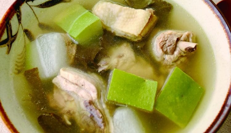 精选影音 冬瓜荷叶鸡汤 【材 料】 土鸡 1/4只 冬瓜 150公克 干荷叶 1张 老姜片 10公克 水 800㏄ 【调 味 料】 盐 1/2茶匙 鸡粉 1/2茶匙 绍兴酒 1茶匙 【做 法】 1.土鸡剁小块、汆烫洗净,备用。 2.冬瓜带皮洗净、切方块,备用。 3.荷叶剪小块,泡水至软,汆烫后洗净,备用。 4.取一内锅,放入作法1、2、3的材料,再加入姜片、800㏄水及所有调味料。 5.将作法4的内锅放入电锅里,外锅加入1杯水,盖上锅盖、按下开关,煮至开关跳起后,捞除姜片即可。 【备 注】 用土鸡煮出来的鸡汤有自然的鲜甜味,如果土鸡较难买到,也能用仿土鸡取代,只是口感会稍差些。