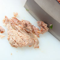 回锅肉切细条状,蒜苗斜切片备用。将蛋与白饭炒成蛋炒饭,盛起备用。