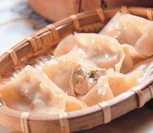 嫂子卖饺子,精选影音 花瓜鸡肉蒸饺 【材 料】 1.花瓜丁 1/4杯 鸡肉末 1杯 白韭菜末 1/3杯 2.饺子皮 15张 【调 味 料】 盐 2小匙 糖 2/3大匙 白胡椒粉 1大匙 香油 2/3大匙 【做 法】 1. 将材料1与所有调味料一起搅拌均匀即完成馅料。 2. 准备一个已抹上油的平盘,将适量馅料包入饺子皮中,依序排入平盘中,饺子与饺子之间要留有空隙,并在饺子皮上略微喷水备用。 3. 准备一个中华锅,架上不锈钢蒸架,注入水至盖过蒸架上约1公分,等水煮沸后,再将作法2的平盘放入,加盖以大火蒸12~15分钟即可起锅食用。 【备 注】 在刚包好的饺子表面略微喷水,是让饺子在蒸煮后不会因表皮的面粉而产生白色斑点,且口感更Q。本食谱为15粒水饺份量。