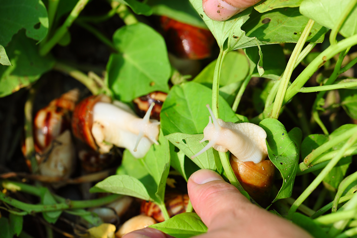 体型大、体色黑,肉质较硬,经常被一般热炒店用来做为炒螺肉。 白玉蜗牛