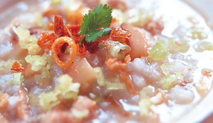 精选影音 香菇肉粥 【材 料】 干香菇 3朵 芹菜 半条 鸡蛋 1个 绞肉 2两 红葱酥 37公克 白粥 1碗 大骨高汤 1碗 香菜 少许 【调 味 料】 盐 1茶匙 白胡椒粉 1/2茶匙 【做 法】 1.干香菇浸泡在水中变软后再取出切丝备用;芹菜切末备用;鸡蛋打散后,放入油锅中以中火炸至酥黄状后取出备用。 2.取一炒锅热锅后,放入绞肉炒至香味出来,再加入大骨高汤、作法1的香菇丝和鸡蛋一起煮10分钟。 3.继续加入白粥、所有的调味料、红葱酥于作法2的材料中,以中火煮开后即可熄火。 4.起锅前,再撒入芹菜末、香菜即可。