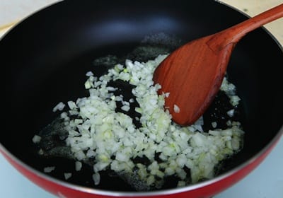 洋葱切细丁。起锅开小火,放入洋葱丁炒过,炒至洋葱香味飘出,捞起。打破鸡蛋壳,取出蛋黄备用。