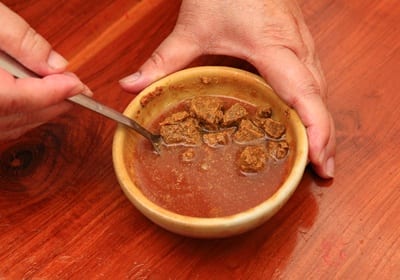 辣味咖哩块加入些许开水搅拌成泥备用。