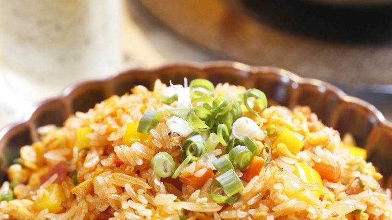 通常炒饭要粒粒分明建议使用隔夜饭,若使用刚煮好的饭建议不要煮得过软。此次示范使用泰国米,亦可使用一般米饭。