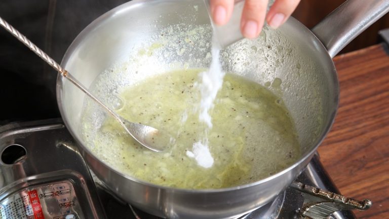 纵切也可以直接摊平,切面朝下香煎,虽然形状不好看,但好处是可以更快熟成。 冷锅冷油
