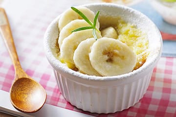 - 3.将作法1煎好的香蕉片装入焗烤器皿中,淋上作法2的蛋黄起司酱与少许的起司丝,撒上少许糖之后,以上火250度下火100度烤约10分钟后取出。摆上新鲜的香蕉做装饰,再撒上少许糖粉即可。