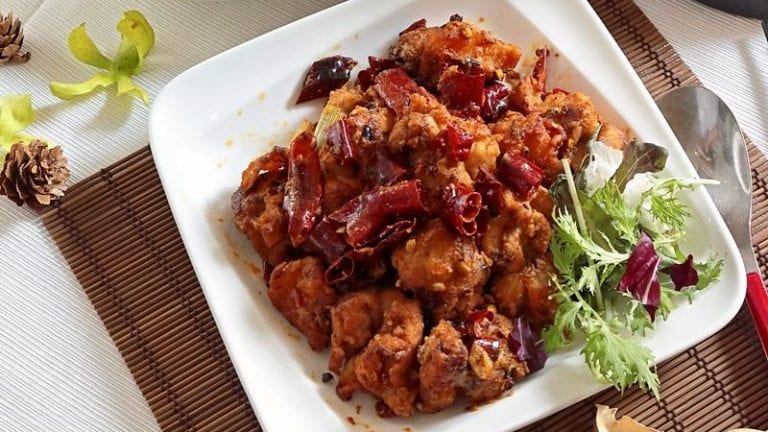 鸡腿肉切小块后先以盐、糖、蛋、太白粉沙拉油醃,下锅前沾少许面粉,以中油温(约摄氏150~160度)下锅油炸。