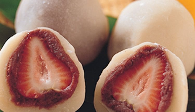 精选影音 草莓金时大福 【材 料】 麻糬团 205公克 草莓 5颗 红豆泥 125公克 【做 法】 (1)在手上沾上少许太白粉,把麻糬团搓成长条状,再分割成每份50公克,共5份,然后用手掌将每份麻糬团压成圆扁状备用。 (2)把草莓洗净去蒂擦乾,外围包上25公克的红豆泥后,放在麻糬上,用手捏合,再慢慢塑成圆球状即可。