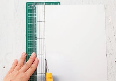将铝板放在切割垫上,以长尺丈量并切出2.5cm铝条。 STEP 2