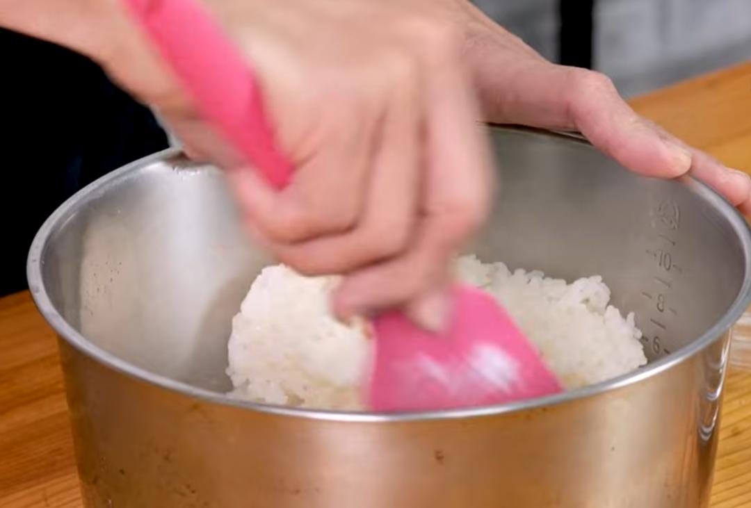 圆糯米洗净后沥干水分,加同等量的水(本篇约用2杯)放入电锅中,外锅加1杯水,按下开关煮到跳起,续焖5分钟。将糯米饭取出电锅,趁热加入糖及油拌匀。