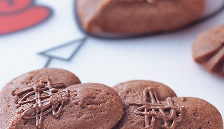 - 1.烤好的饼乾,可先放置一旁到温度变凉,然后取些巧克力隔水加热融化后,装入挤花袋里,在变凉的饼干上挤一些巧克力做线条的变化,可增加饼干的活泼性喔!