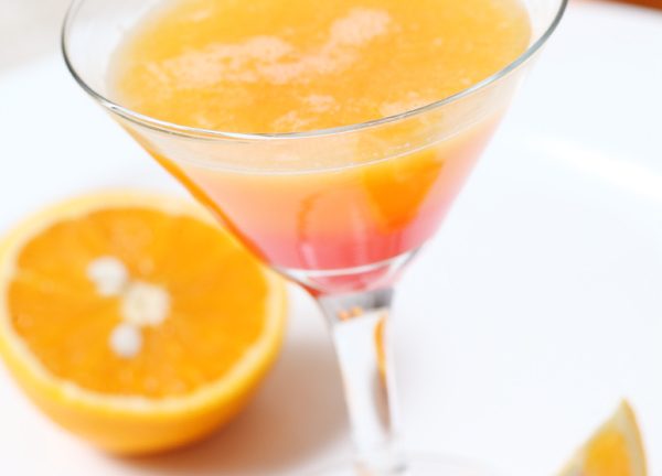 凉一下饮品、果汁、水果 橙香红石榴汁 材料 柳橙2∼3颗 红石榴汁5c.c. 1 柳橙洗净后对切并榨成汁,取约60c.c.的柳橙汁即可。 2 将柳橙汁倒入杯中约七分满。 3 接着将红石榴汁朝柳橙汁中央倒入杯中即可。 红石榴汁因比重较重会沉淀于杯底,呈现出上黄下红双色分明的样子。