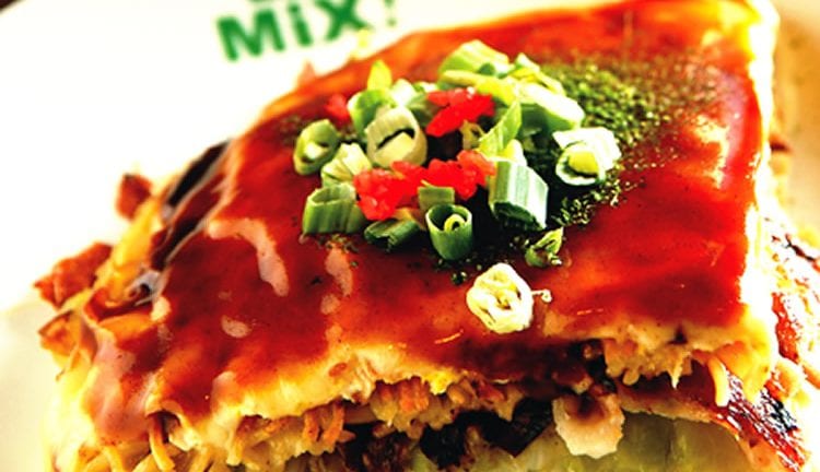 精选影音 起司广岛烧 【材 料】 葱末 少许 面糊 适量 奶油 少许 高丽菜 适量 黄金珠 少许 豆芽菜 少许 起司块 少许 猪肉片 少许 油面 适量 【调 味 料】 海苔粉 少许 特制酱汁 少许 【做 法】 1.铁板加热到180℃后,将奶油均匀涂抹在铁板上,倒入面糊画一个大圆圈制作面皮。 2.加入少许特制酱汁后,铺上大量高丽菜、黄金珠、起士块后煎煮。 3.再放上猪肉片继续煎煮约3分钟后翻面,可在面团四周淋上一些水帮助熟成。 4.将油面在一旁铁板上略炒,再将作法3的材料铺在油面上,继续煎煮5分钟。 5.另外煎一个蛋皮,将作法4的材料移至蛋皮上,再翻面煎煮3分钟,最后撒上海苔粉、酱汁等佐料即完成。