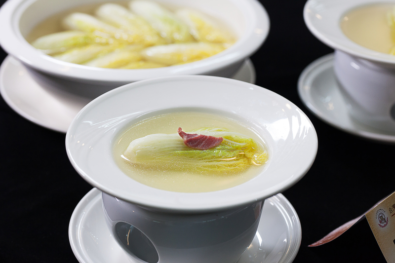 5.把白菜放在调味好的汤里浸泡,蒸熟上桌。