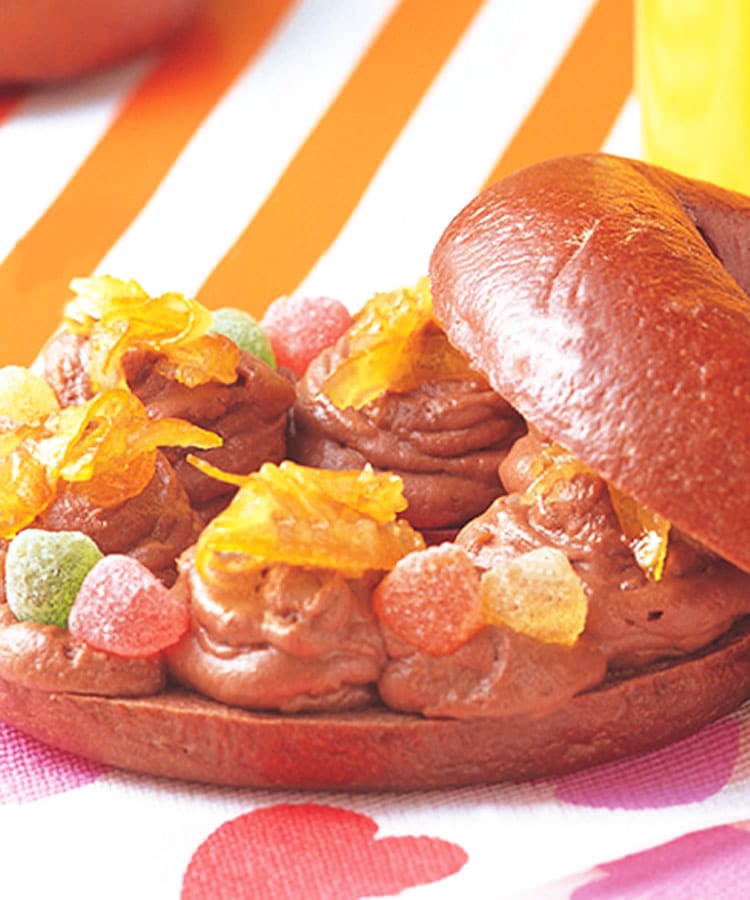 【材 料】 巧克力贝果 1个 巧克力柳橙乳酪酱 80g 蜜柳橙皮 30g 彩色软糖 12颗 【做 法】 1.将 […]